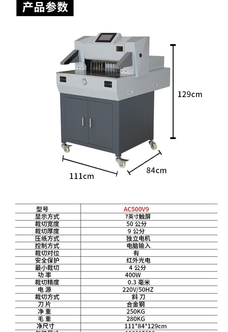 震旦AURORA 90mm電動程控切紙機7英寸觸屏A3幅面斜刀 標書文件裁紙機書籍檔案修邊切紙刀 AC500V9 自營