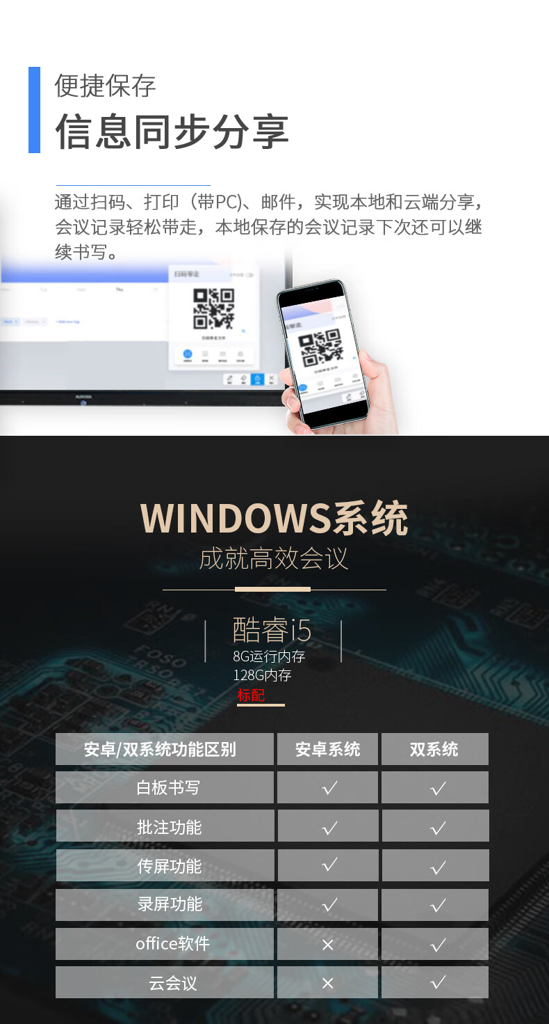 震旦AURORA 智能會議平板 商務(wù)大屏 辦公電子白板無線同屏交互式平板電視 SD75CA 75英寸標配 自營
