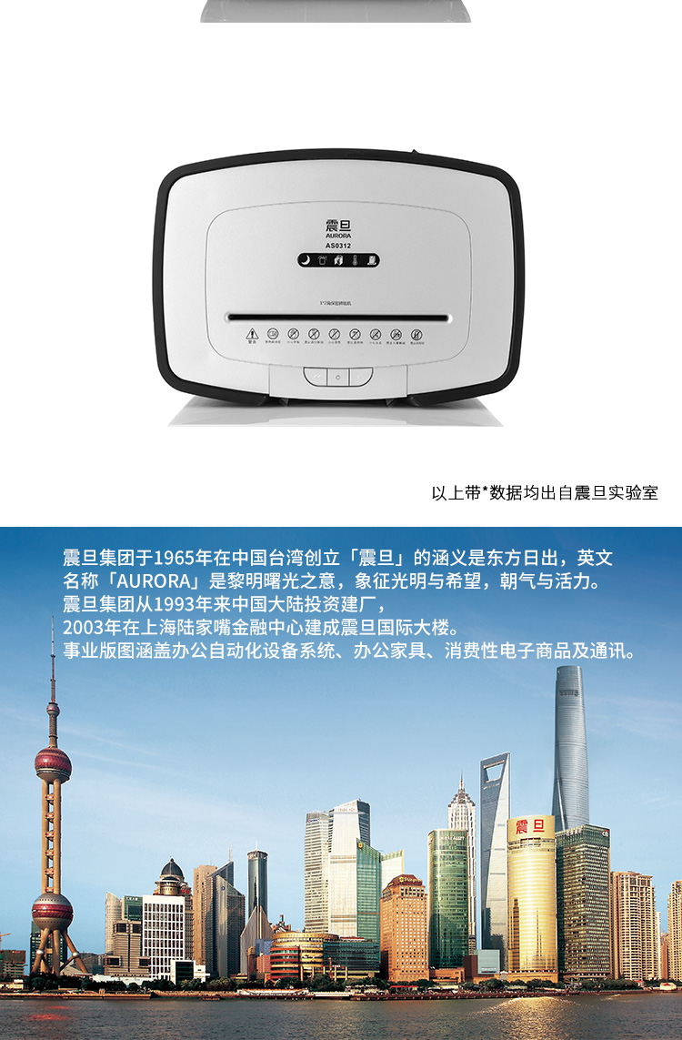 震旦AURORA 7級保密辦公商用碎紙機(單次3張 持續(xù)20分鐘 26.5L 可碎卡) AS0312 自營