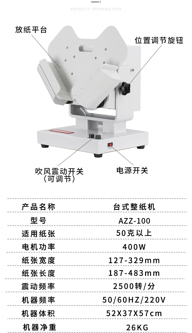 震旦AURORA 臺式整紙機(jī)抖紙機(jī)高速臺式震紙機(jī)闖紙振紙吹風(fēng)除靜電印刷廠整紙機(jī) AZZ-100 自營