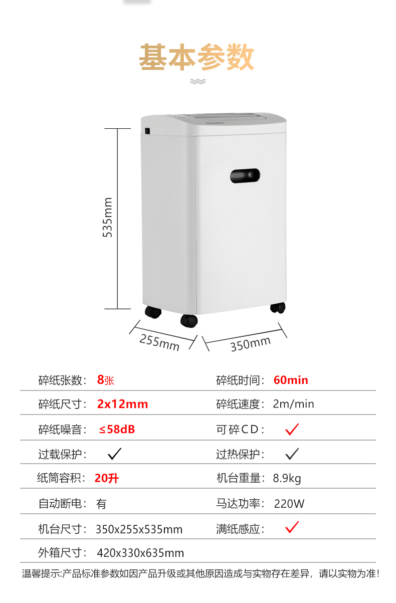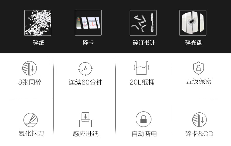 震旦AURORA 5級保密辦公商用碎紙機(單次8張 持續(xù)60分鐘 20L 可碎卡、光盤) AS0819CD 自營