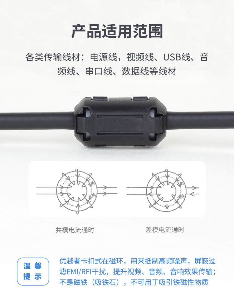 優(yōu)越者(UNITEK)卡扣式抗干擾磁環(huán)內(nèi)徑9mm 可拆卸USB線HDMI線屏蔽濾波磁環(huán) Y-OT13BK 自營