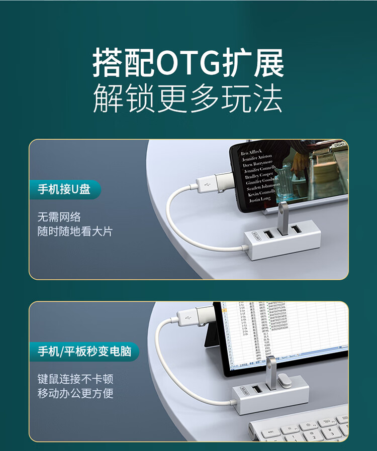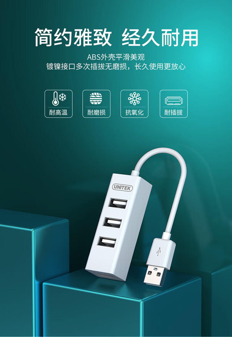 優(yōu)越者(UNITEK)usb2.0分線器 高速4口HUB集線器 筆記本臺(tái)式電腦一拖四口usb擴(kuò)展塢延長(zhǎng)線轉(zhuǎn)換器0.1米 Y-2146 自營(yíng)
