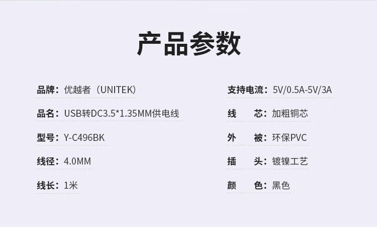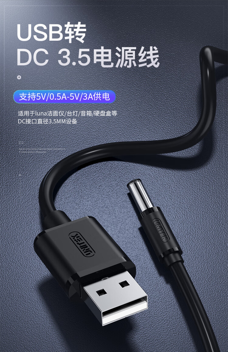 優(yōu)越者(UNITEK)圓孔充電線圓頭 USB轉(zhuǎn)DC3.5mm供電線1米 臺(tái)燈小風(fēng)扇hub小音箱路由器電源線 Y-C496BK 自營(yíng)