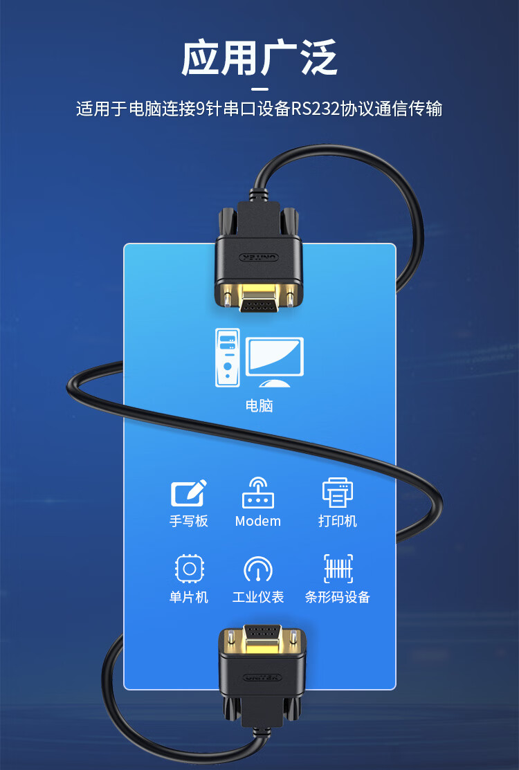 優(yōu)越者(UNITEK)rs232串口線母對母23交叉線1.5米 DB九針com口調(diào)試線 掃描儀/稅控機(jī)/編程機(jī)/串口線C718BK 自營