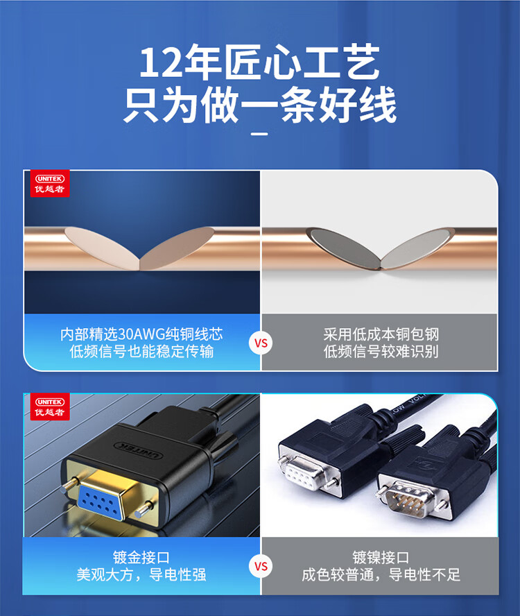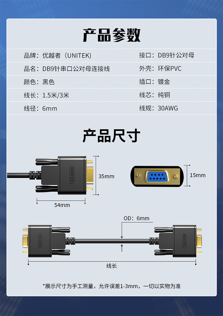 優(yōu)越者(UNITEK)rs232串口線延長線公對(duì)母com口連接線1.5米 數(shù)碼機(jī)床條形碼機(jī)DB9針串口轉(zhuǎn)接線 Y-C706ABK 自營
