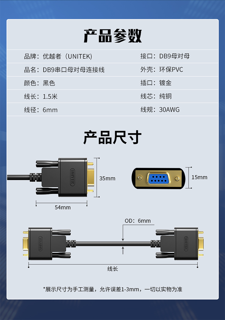 優(yōu)越者(UNITEK)rs232串口線1.5米 母對(duì)母com口線 DB九針串口線 掃描儀/稅控機(jī)/編程機(jī)/調(diào)試線C710ABK 自營(yíng)