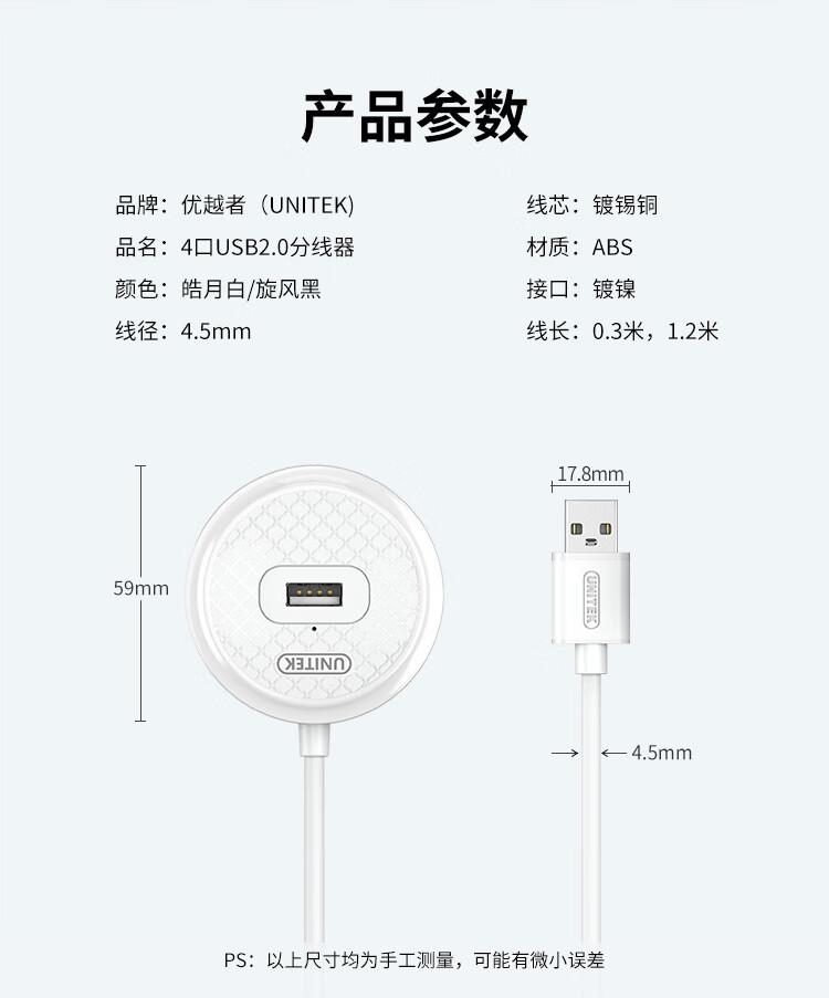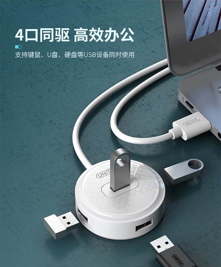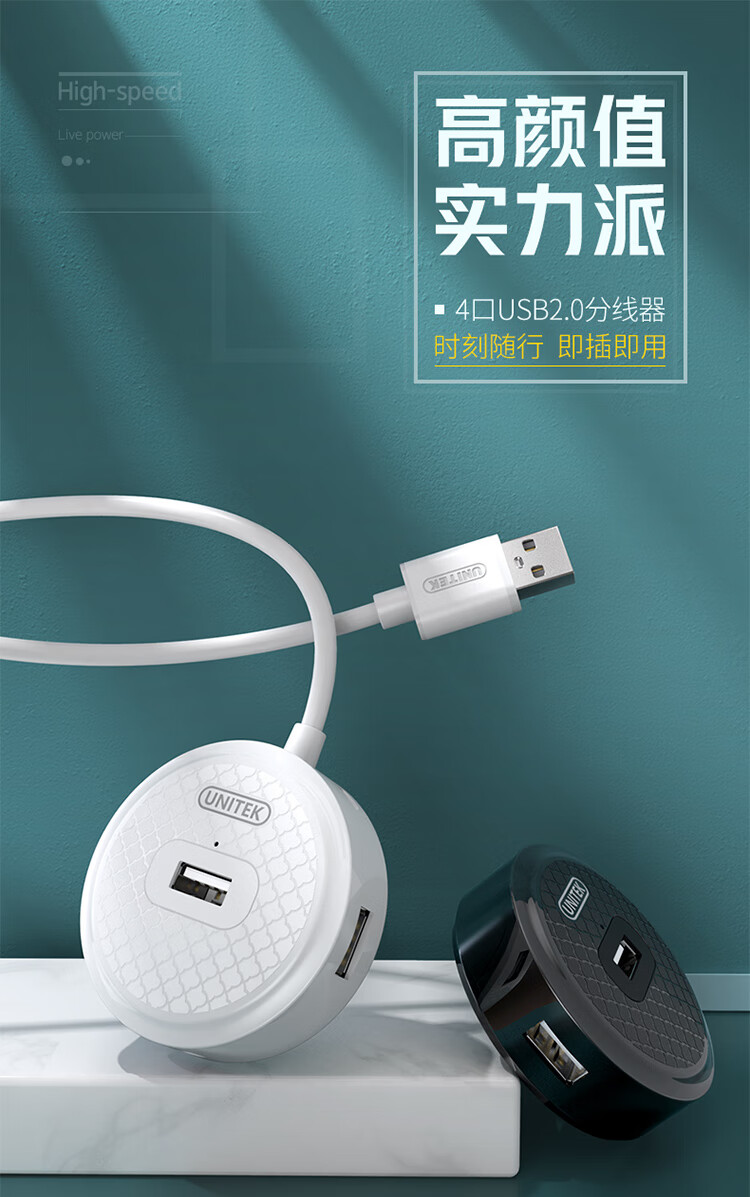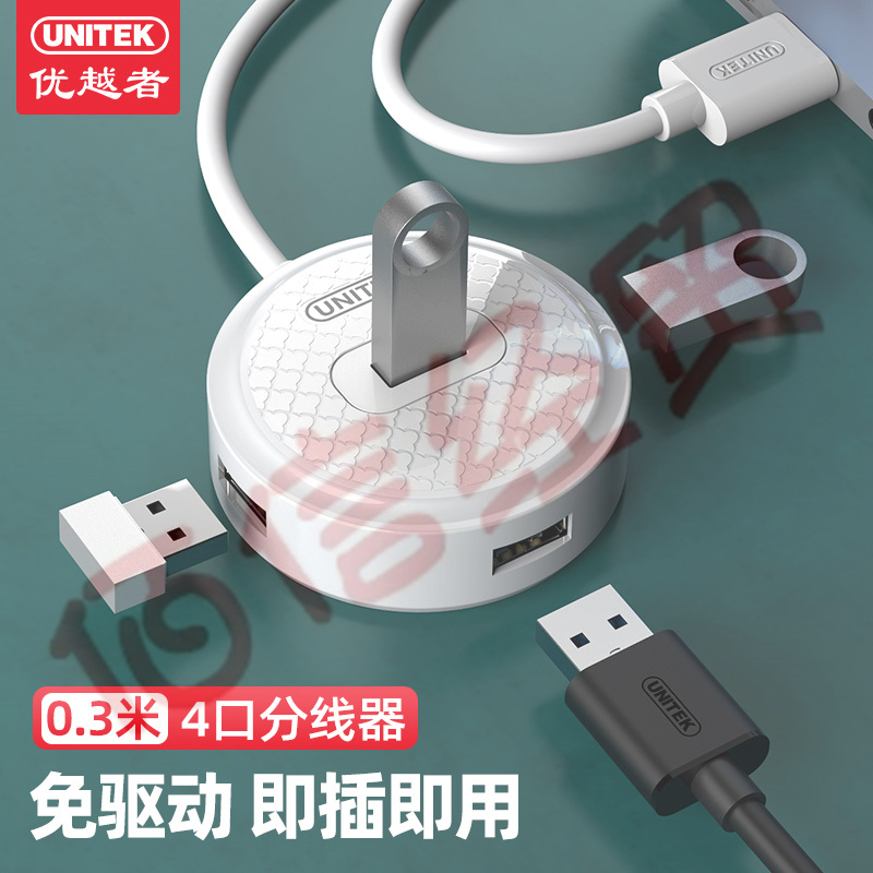 優(yōu)越者(UNITEK)usb分線器2.0 4口集線器 hub擴展塢 筆記本電腦多口usb轉(zhuǎn)換器帶電源口 白0.3米H200AWH 自營