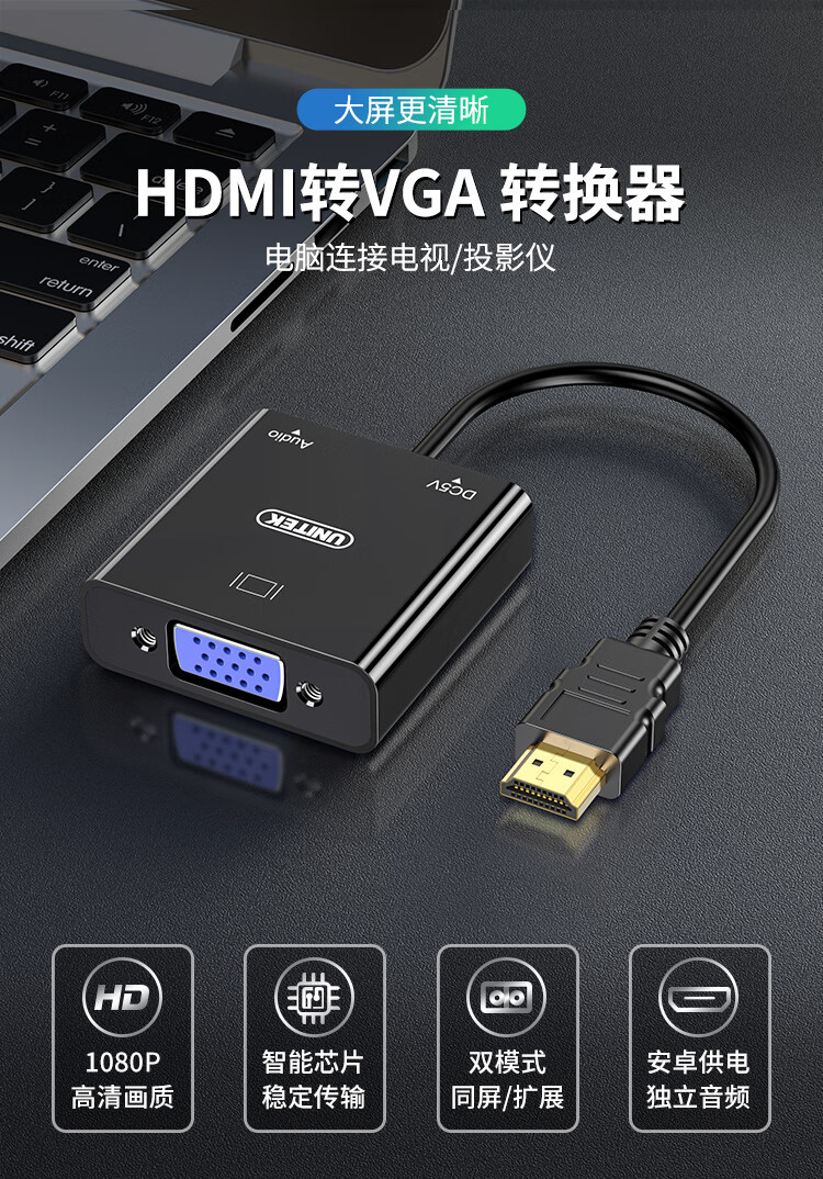 優(yōu)越者 HDMI轉(zhuǎn)VGA轉(zhuǎn)換器 帶供電音頻 高清視頻轉(zhuǎn)接頭 筆記本電腦電視盒子接電視顯示器投影儀轉(zhuǎn)換口 V128BBK 自營