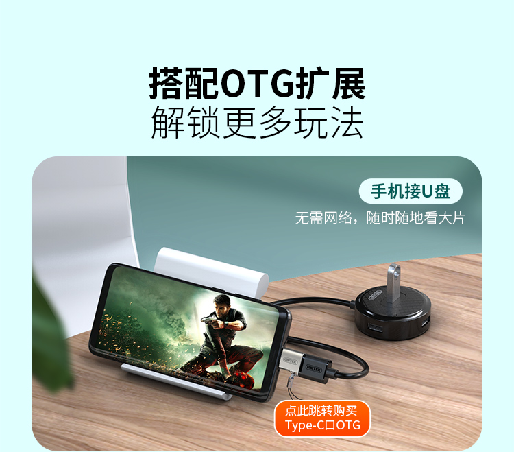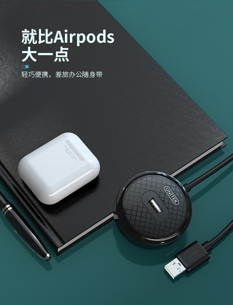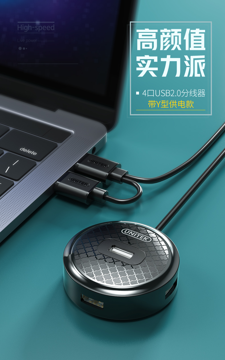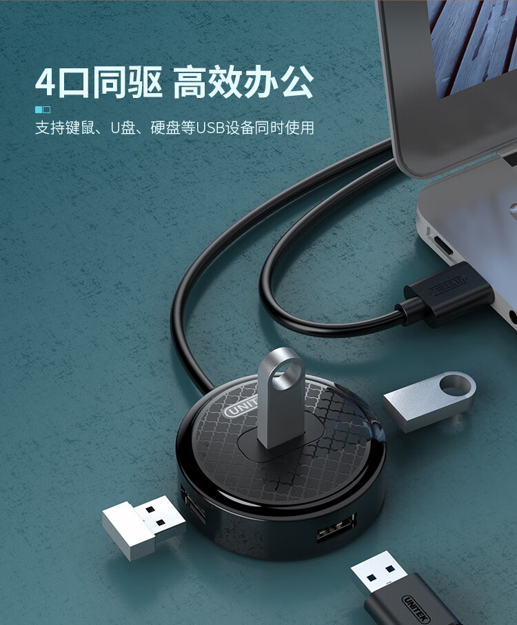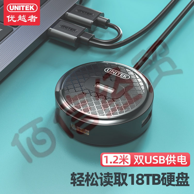 優(yōu)越者 usb分線器 HUB集線器轉(zhuǎn)換器 一拖四多接口 筆記本電腦擴展塢 雙USB接口供電 黑 1.2米 H200DBK 自營