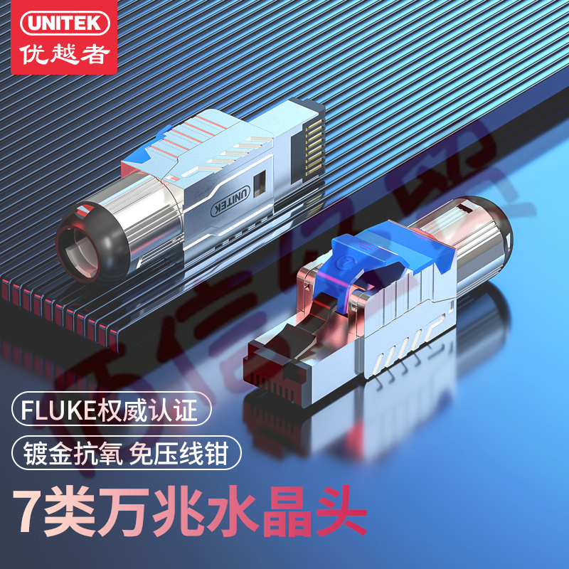 優(yōu)越者(UNITEK)七類水晶頭工程級CAT.7萬兆免壓網(wǎng)絡(luò)線接頭 10Gbps高速傳輸RJ45電腦網(wǎng)線連接器 OT48NI 1個裝 自營
