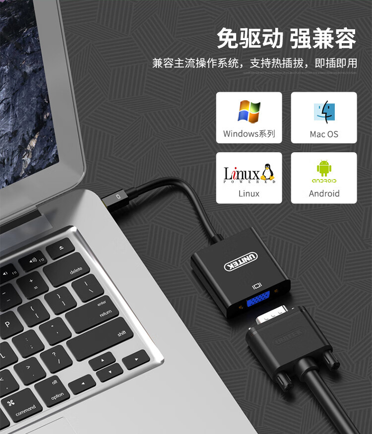 優(yōu)越者(UNITEK)Mini DP轉(zhuǎn)VGA轉(zhuǎn)換器 蘋果雷電接口投屏 迷你Displayport電腦顯示器連接線黑色 Y-6336BK 自營