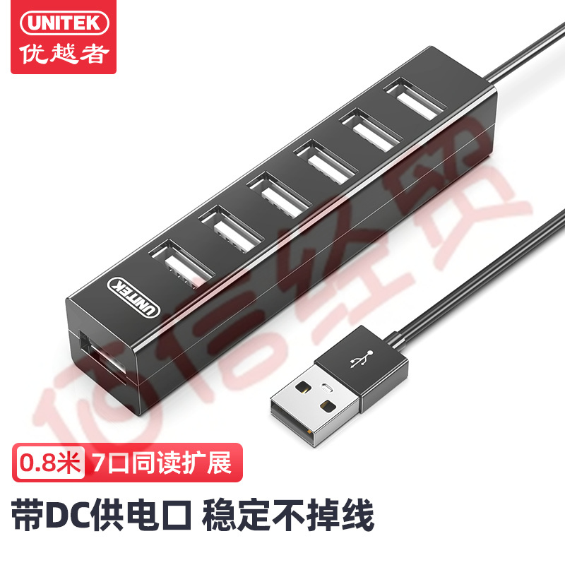優(yōu)越者(UNITEK)usb分線器一拖七 高速拓展7口2.0HUB集線器 多接口擴(kuò)展塢 0.8米Y-2160BK 自營