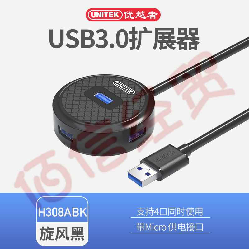 優(yōu)越者USB分線器3.0高速4口擴展塢帶電源供電口筆記本臺式電腦一拖四hub集線器usb延長線0.3米白色 H308AWH 自營