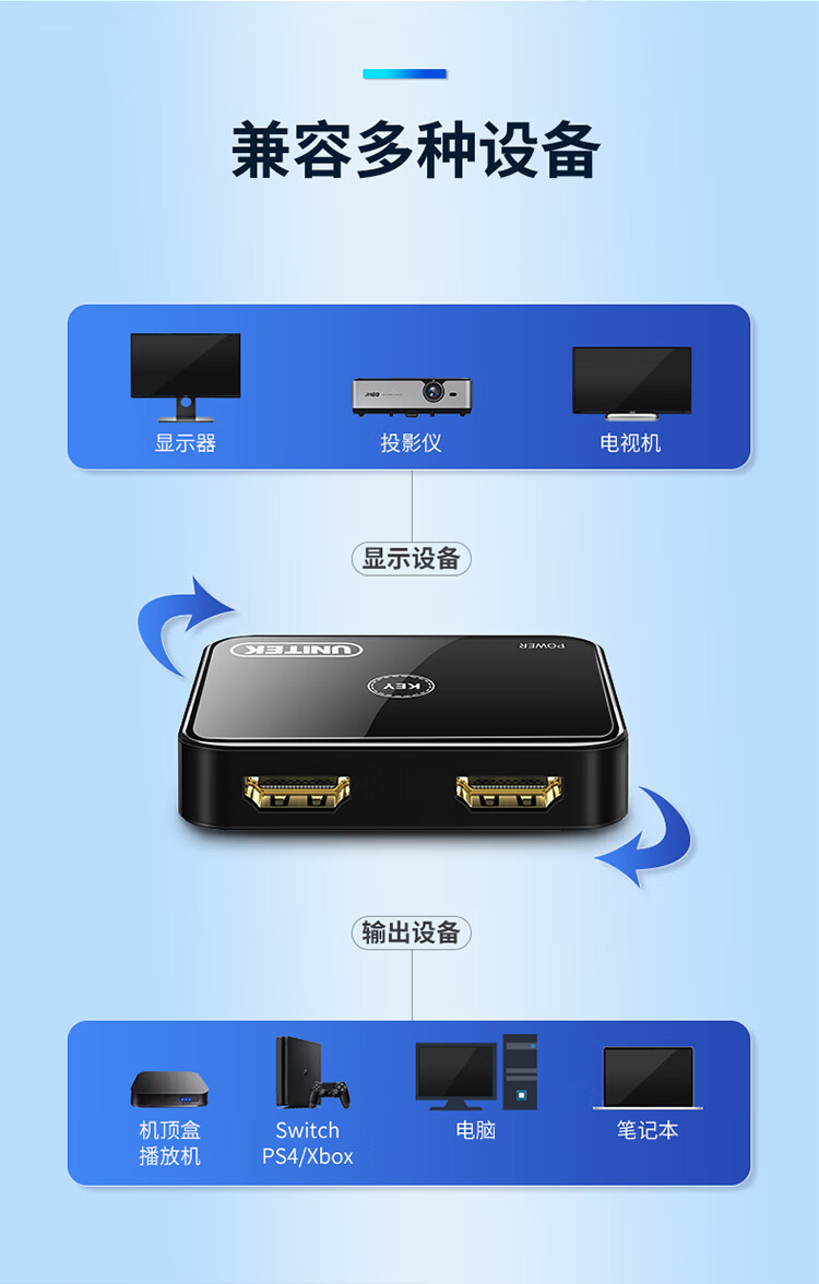 優(yōu)越者(UNITEK)HDMI切換器二進(jìn)一出 4K高清視頻一分二分配器筆記本電腦智能盒子接電視投影儀雙向轉(zhuǎn)換V140A 自營(yíng)