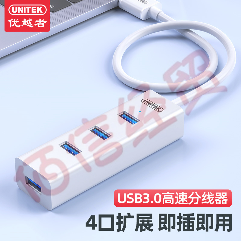 優(yōu)越者 usb3.0分線器 高速4口拓展器 筆記本電腦一拖四轉換器多接口延長線帶電源口 白色 1.2米 Y-3089AWH 自營