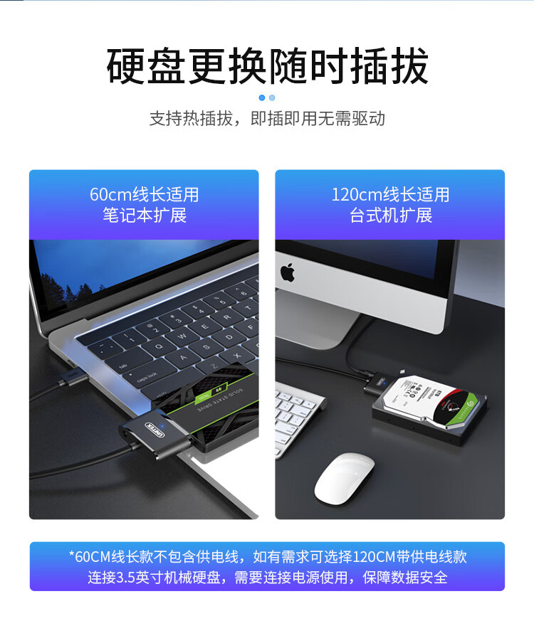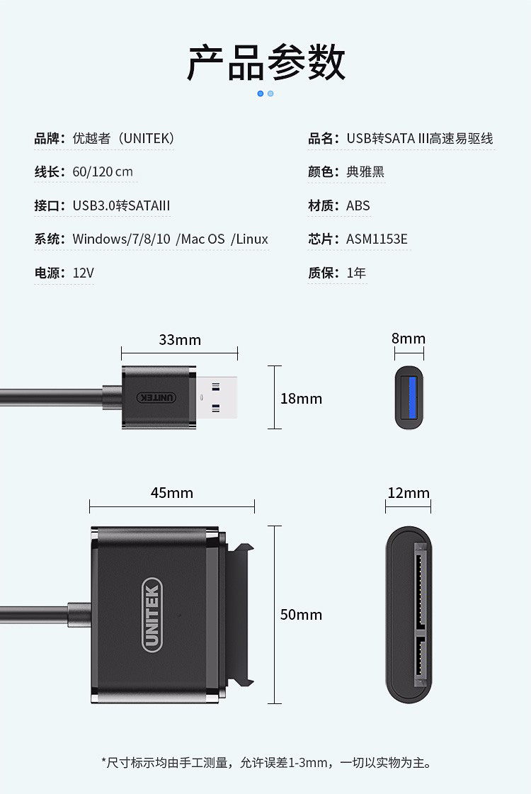 優(yōu)越者(UNITEK) usb轉sata易驅線 筆記本臺式電腦硬盤轉換器2.5英寸固態(tài)機械硬盤數據延長線0.6米 Y-1093BK 自營