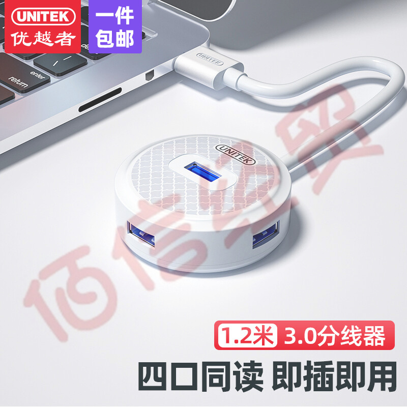 優(yōu)越者USB分線器3.0高速4口擴(kuò)展塢帶電源供電口筆記本臺式電腦一拖四hub集線器usb延長線1.2米白色 H308BWH 自營