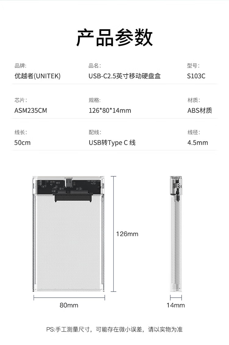 優(yōu)越者(UNITEK)移動(dòng)硬盤(pán)盒2.5英寸 Type-C Gen2透明款 機(jī)械/SSD固態(tài)硬盤(pán) USB C3.1筆記本外置盒子 S103C 自營(yíng)