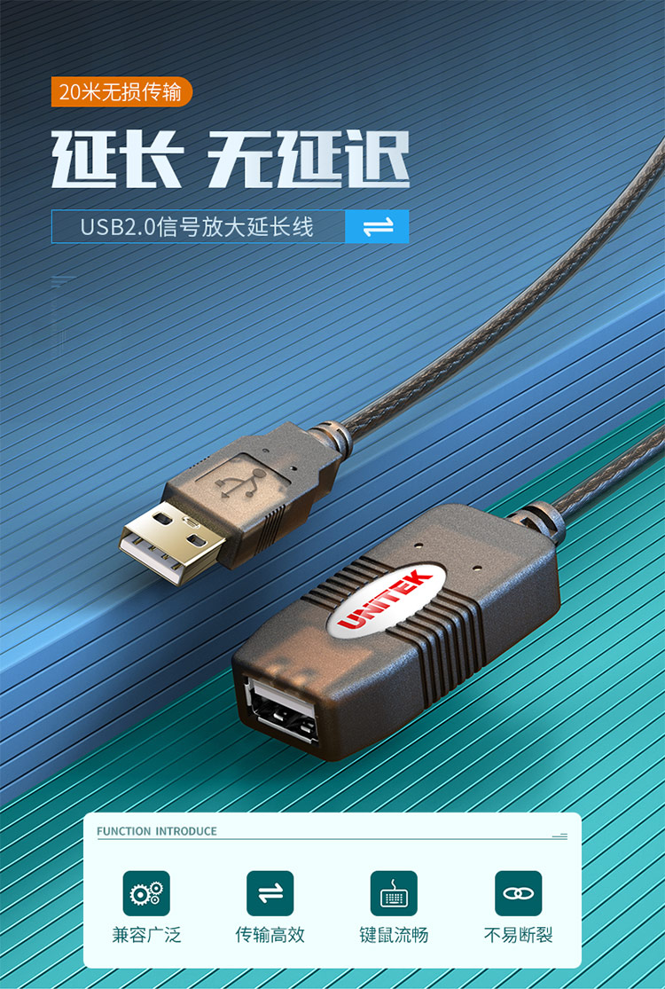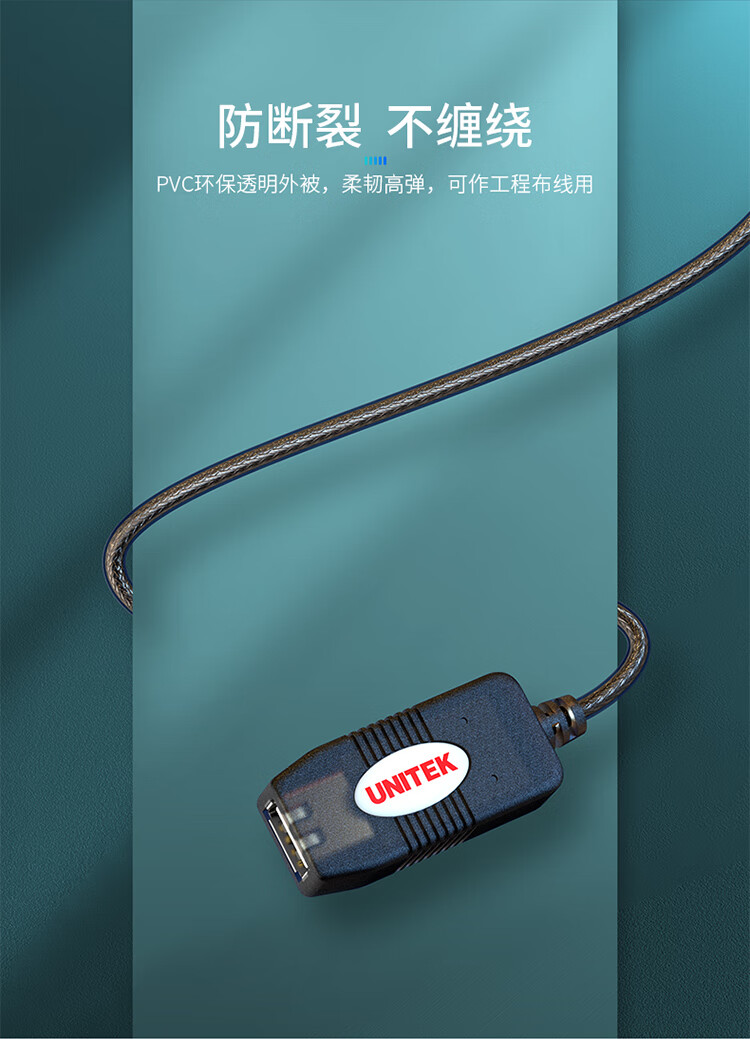 優(yōu)越者(UNITEK)USB延長線 2.0公對母數(shù)據(jù)線帶信號放大器電腦鼠標無線網(wǎng)卡連接線加長線5米 Y-250 自營