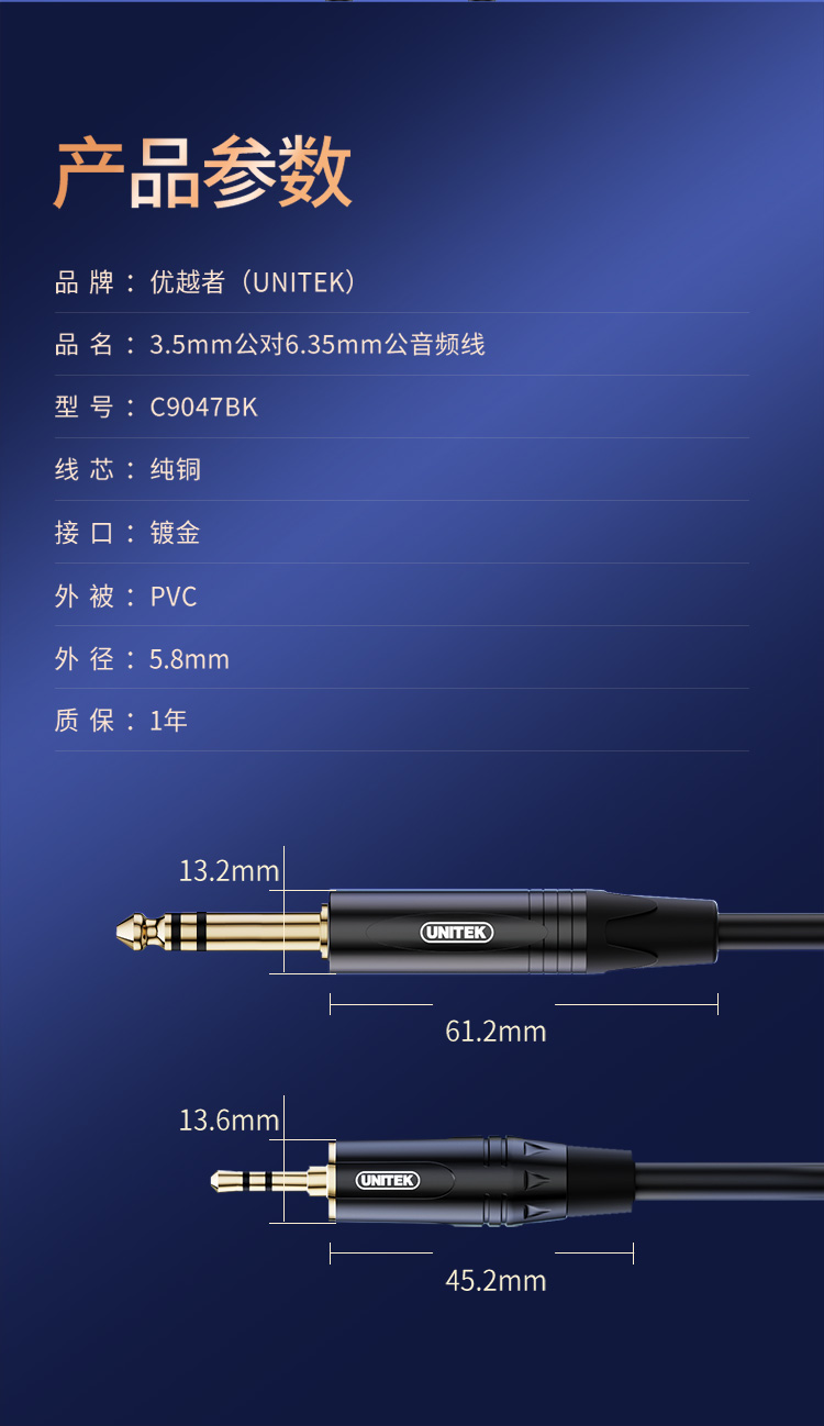 優(yōu)越者3.5mm轉(zhuǎn)6.5mm公對公音頻線 手機筆記本電腦音響箱連接線6.35功放調(diào)音臺轉(zhuǎn)換線5米 C9047BK 自營