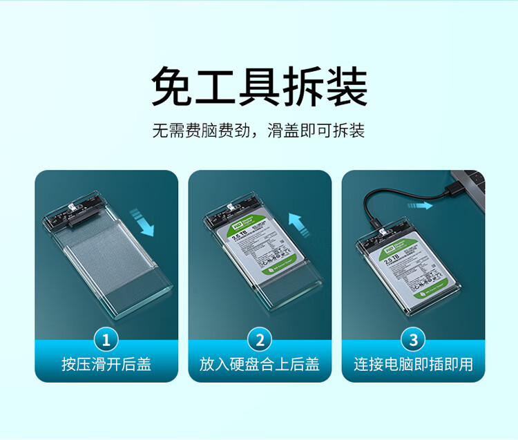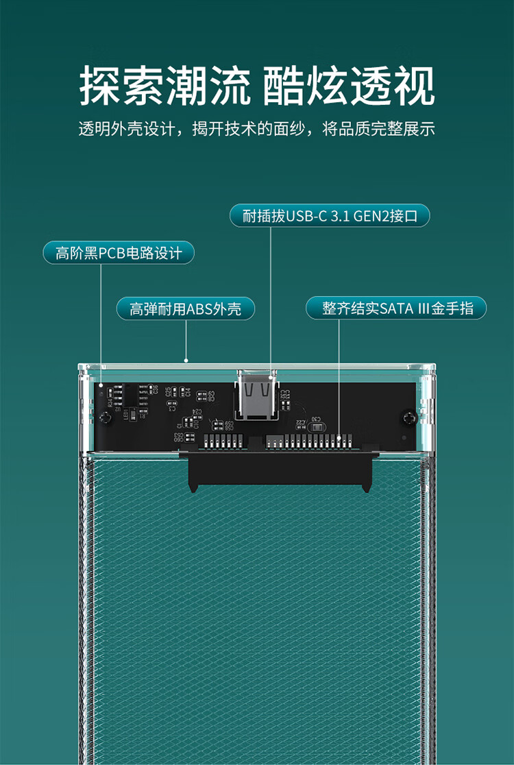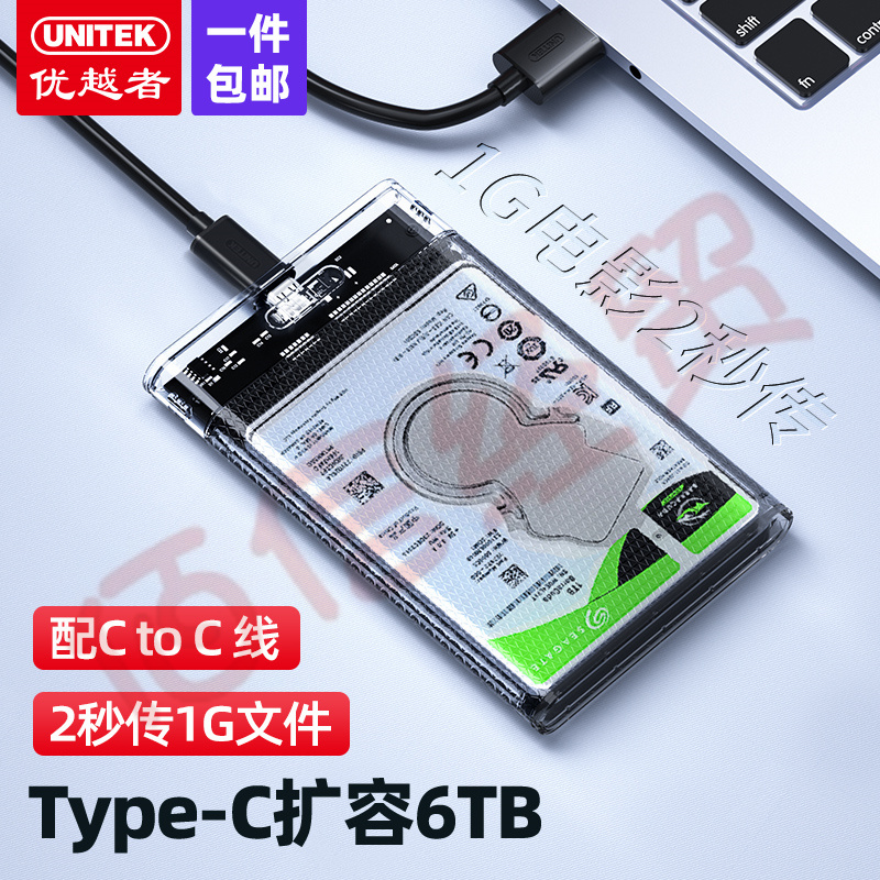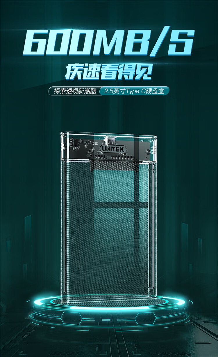 優(yōu)越者(UNITEK)移動硬盤盒2.5英寸 Type-C透明款 機械/SSD固態(tài)硬盤筆記本外置盒子 配Type-C3.1線 S103D 自營