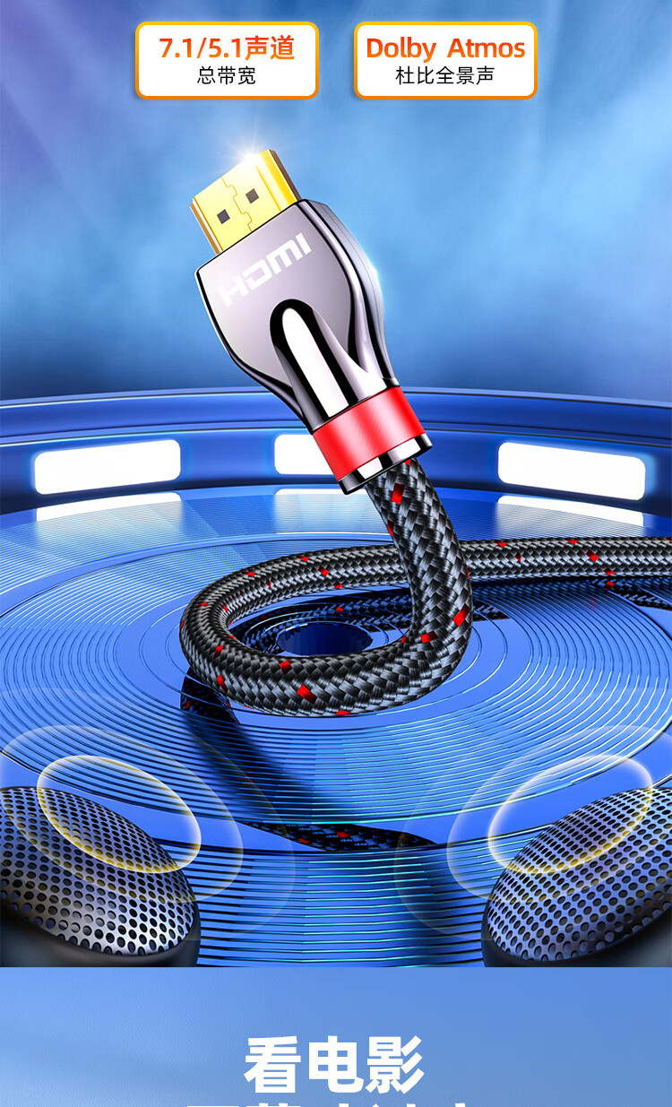 優(yōu)越者(UNITEK)hdmi線2.1版 8K60Hz 4K120Hz 2K144Hz 筆記本電腦機(jī)頂盒接電視顯示器投影儀高清視頻連接線1米 自營(yíng)