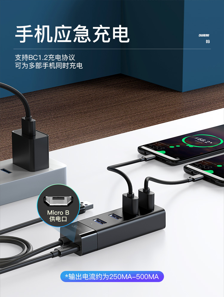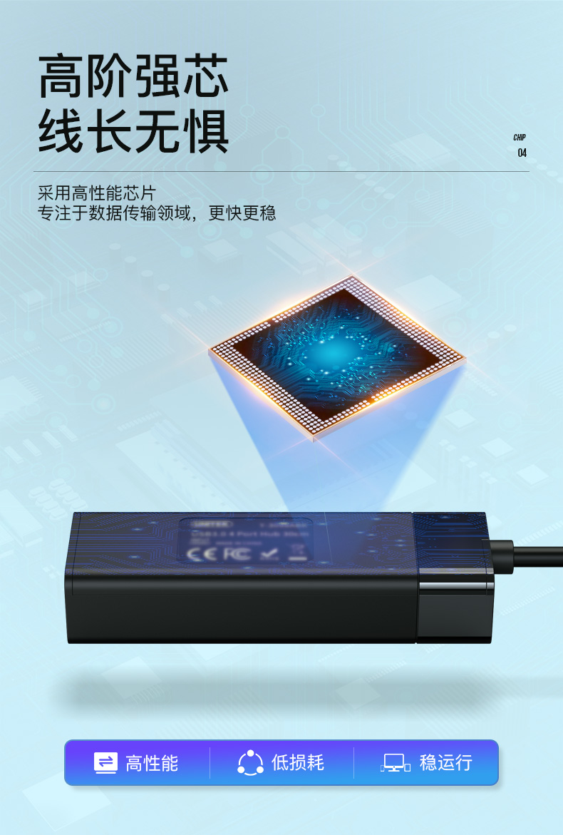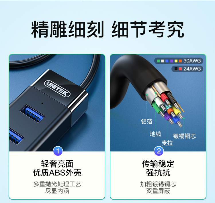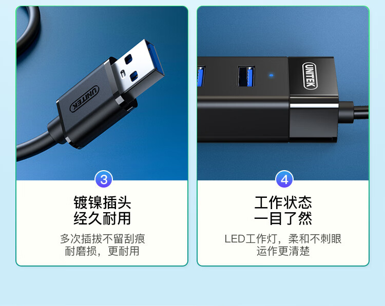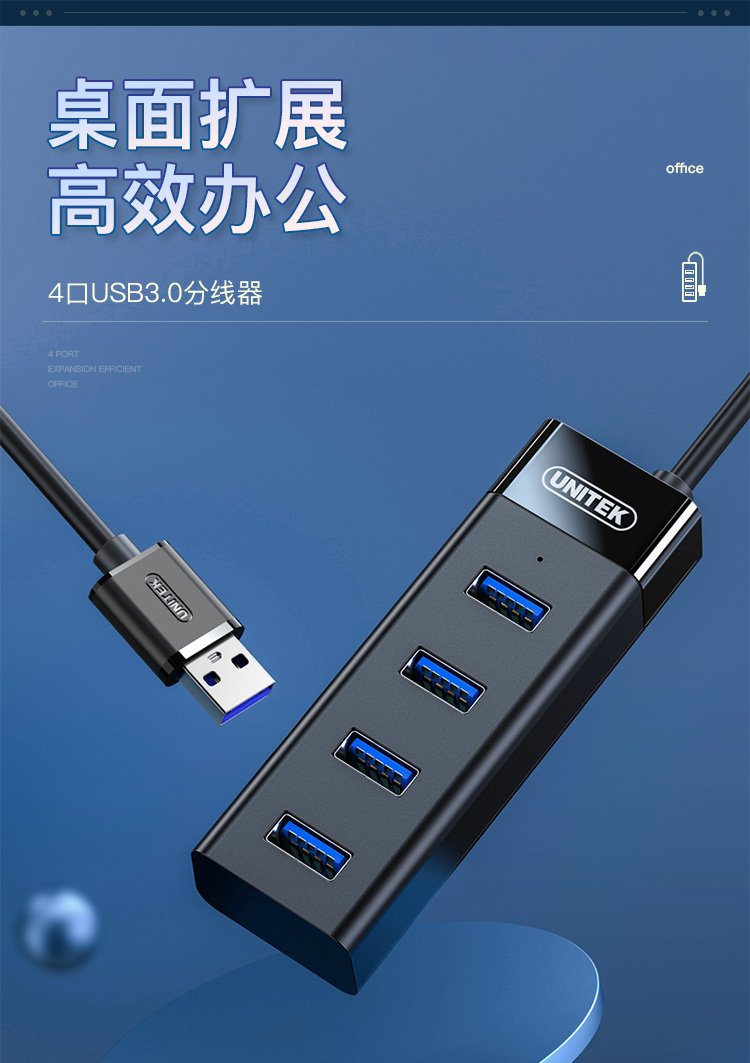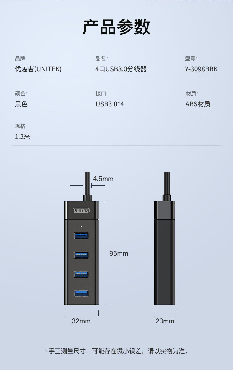 優(yōu)越者(UNITEK)USB分線器3.0高速4口擴展塢筆記本臺式一拖四hub集線器usb延長線帶供電接口1.2米 Y-3098BBK 自營