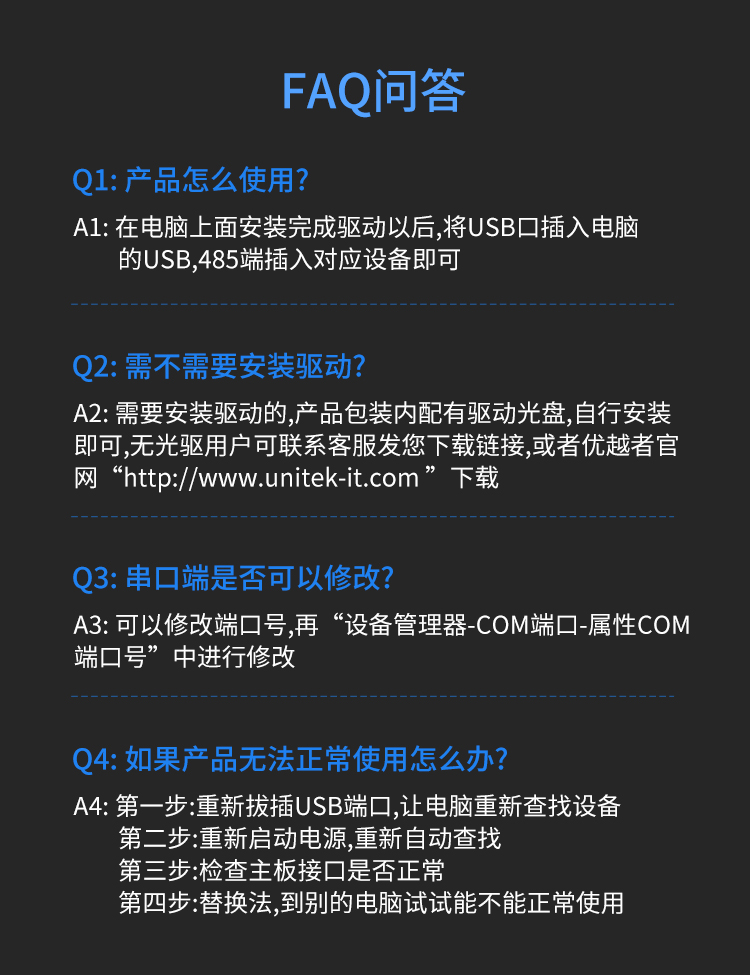 優(yōu)越者(UNITEK) usb轉485串口線 485com口連接線0.8米 筆記本電腦接考勤機條形碼機稅控機 串口調試線Y-1081 自營