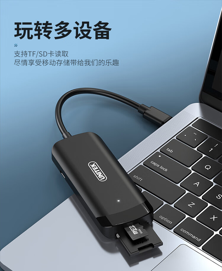 優(yōu)越者(UNITEK)Type-C擴(kuò)展塢USB3.0高速讀卡器多功能SD/TF二合一雙卡雙讀手機(jī)單反監(jiān)控記錄儀存儲(chǔ)內(nèi)存卡H110C 自營(yíng)