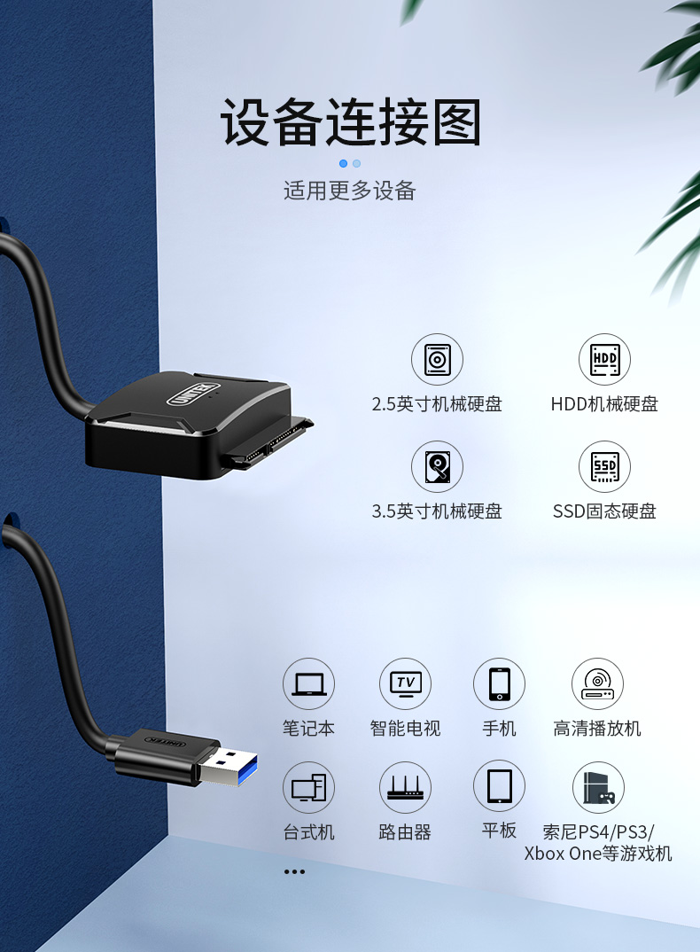 優(yōu)越者(UNITEK)usb3.0轉(zhuǎn)sata易驅(qū)線2.5 3.5英寸筆記本電腦臺式機(jī)硬盤連接線1.2米帶電源光驅(qū)轉(zhuǎn)換器 Y-1093P 自營