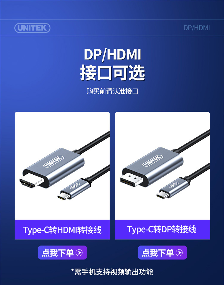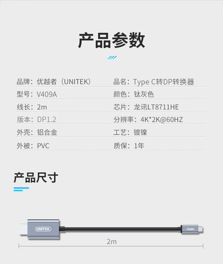 優(yōu)越者(UNITEK) Type-C轉(zhuǎn)DP轉(zhuǎn)換線4K高清投屏線 蘋果MacBook華為P40手機(jī)接顯示器轉(zhuǎn)接器擴(kuò)展塢2米 V409A 自營(yíng)