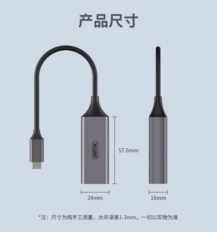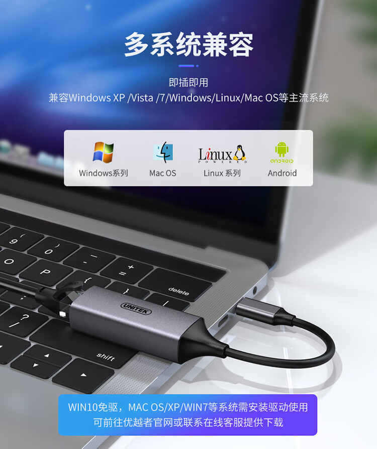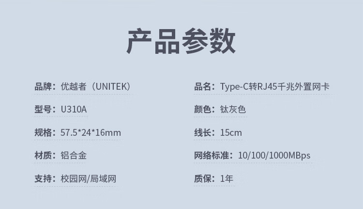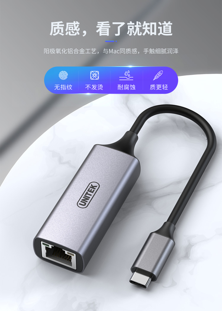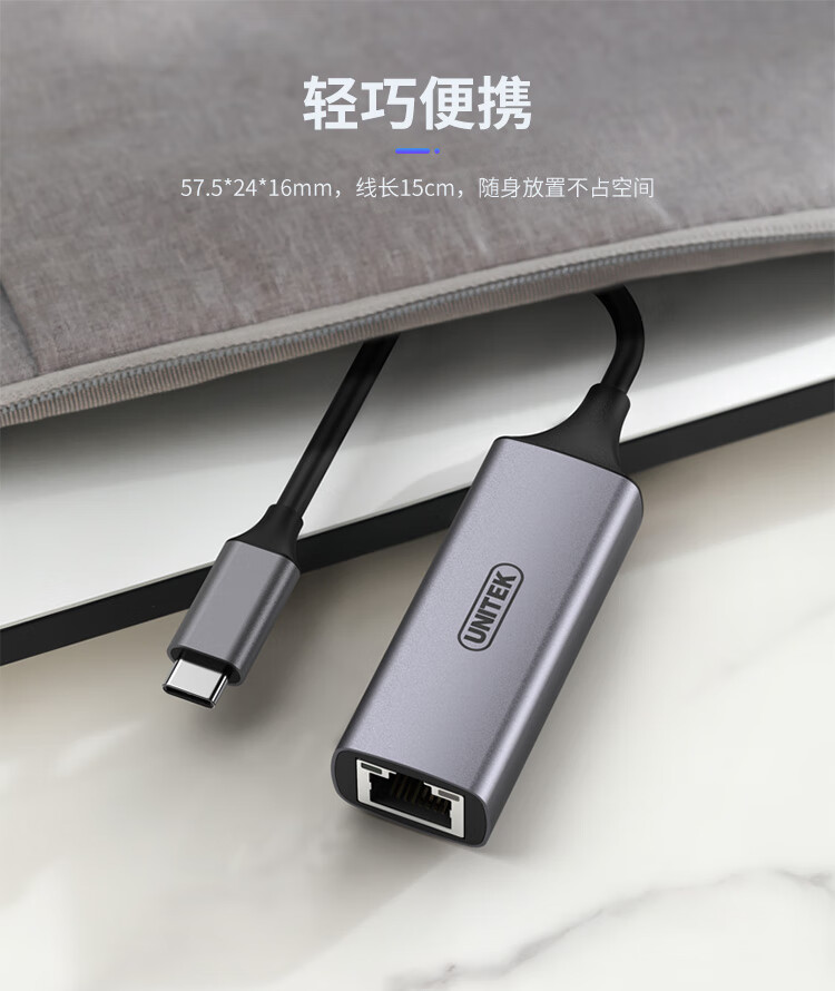 優(yōu)越者(UNITEK)Type-c擴展塢 千兆網(wǎng)卡轉(zhuǎn)換器蘋果Mac華為小米筆記本電腦外置USB-C轉(zhuǎn)rj45網(wǎng)線分線器 U310A 自營