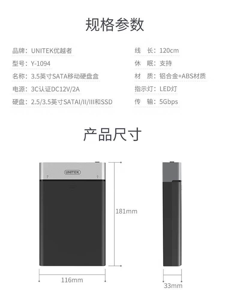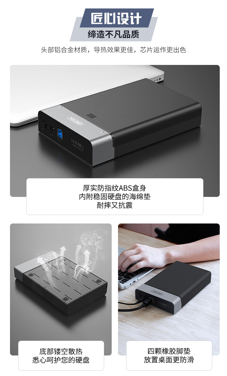 優(yōu)越者(UNITEK)硬盤盒3.5英寸 筆記本臺式外接 機械/SSD固態(tài)移動硬盤盒子 支持18T Y-1094BK 自營