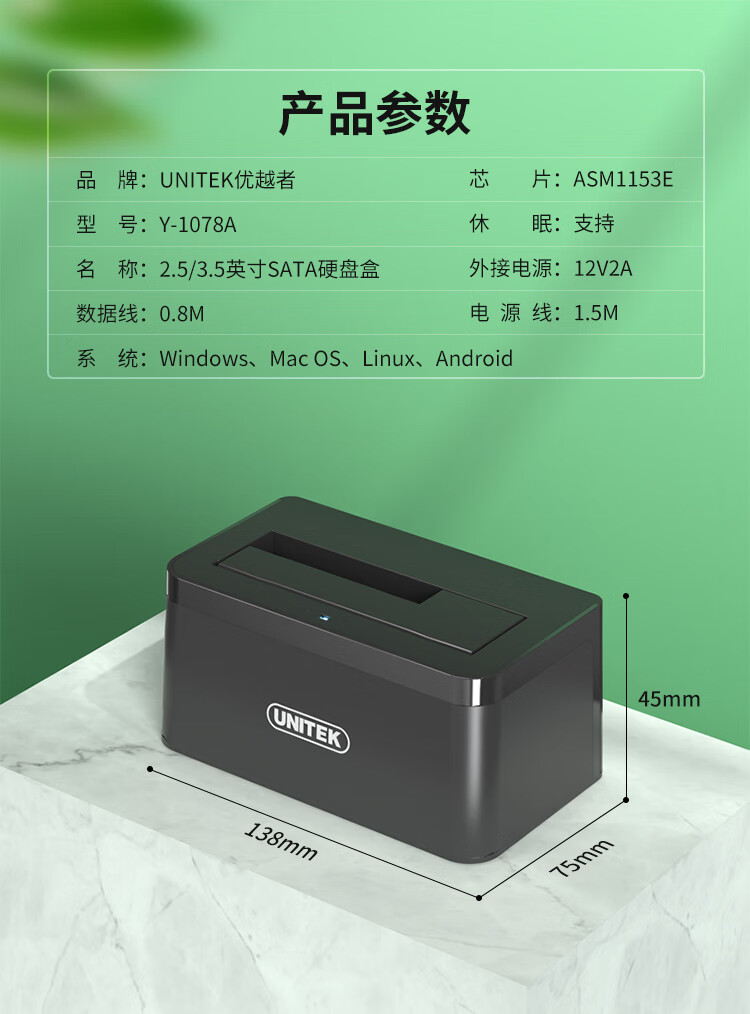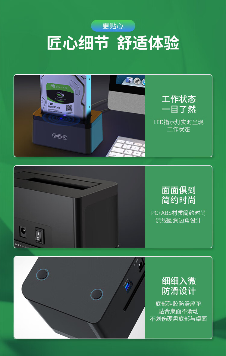 優(yōu)越者(UNITEK)硬盤(pán)底座單盤(pán)位2.5/3.5英寸 機(jī)械/SSD固態(tài)硬盤(pán)盒 筆記本外接硬盤(pán)盒子Y-1078ABK 自營(yíng)