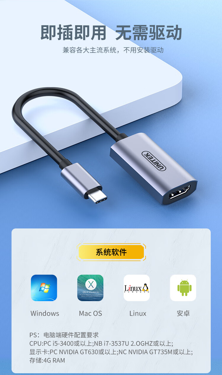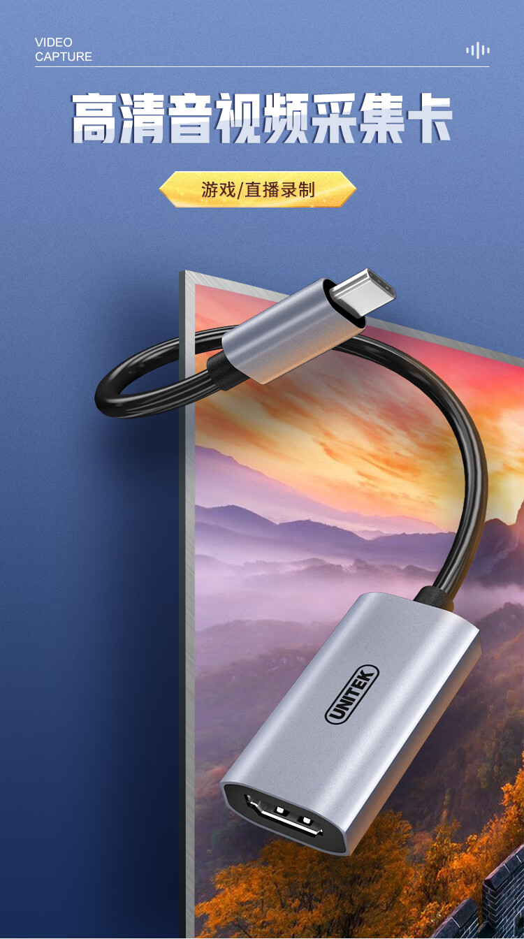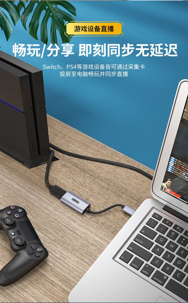 優(yōu)越者(UNITEK)HDMI視頻采集卡 ps4/xbox/Switch游戲直播電腦錄制盒 USB轉(zhuǎn)高清HDMI采集盒 V141A 自營