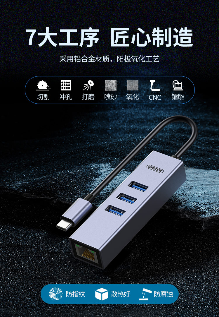優(yōu)越者type-c擴(kuò)展塢 usb分線器3.0轉(zhuǎn)千兆網(wǎng)口 蘋果華為小米聯(lián)想筆記本電腦usb擴(kuò)展網(wǎng)線轉(zhuǎn)換器 Y-3083W 自營(yíng)