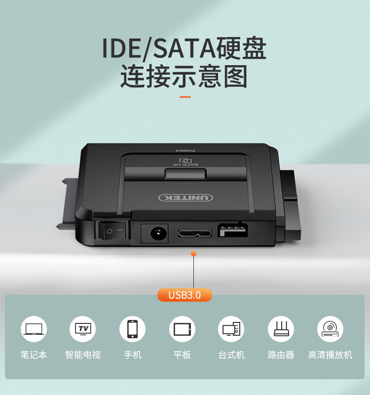優(yōu)越者(UNITEK)USB3.0轉(zhuǎn)sata/ide硬盤易驅(qū)線 2.5/3.5英寸硬盤數(shù)據(jù)線硬盤存儲轉(zhuǎn)換器帶電源外接光驅(qū)Y-3321 自營