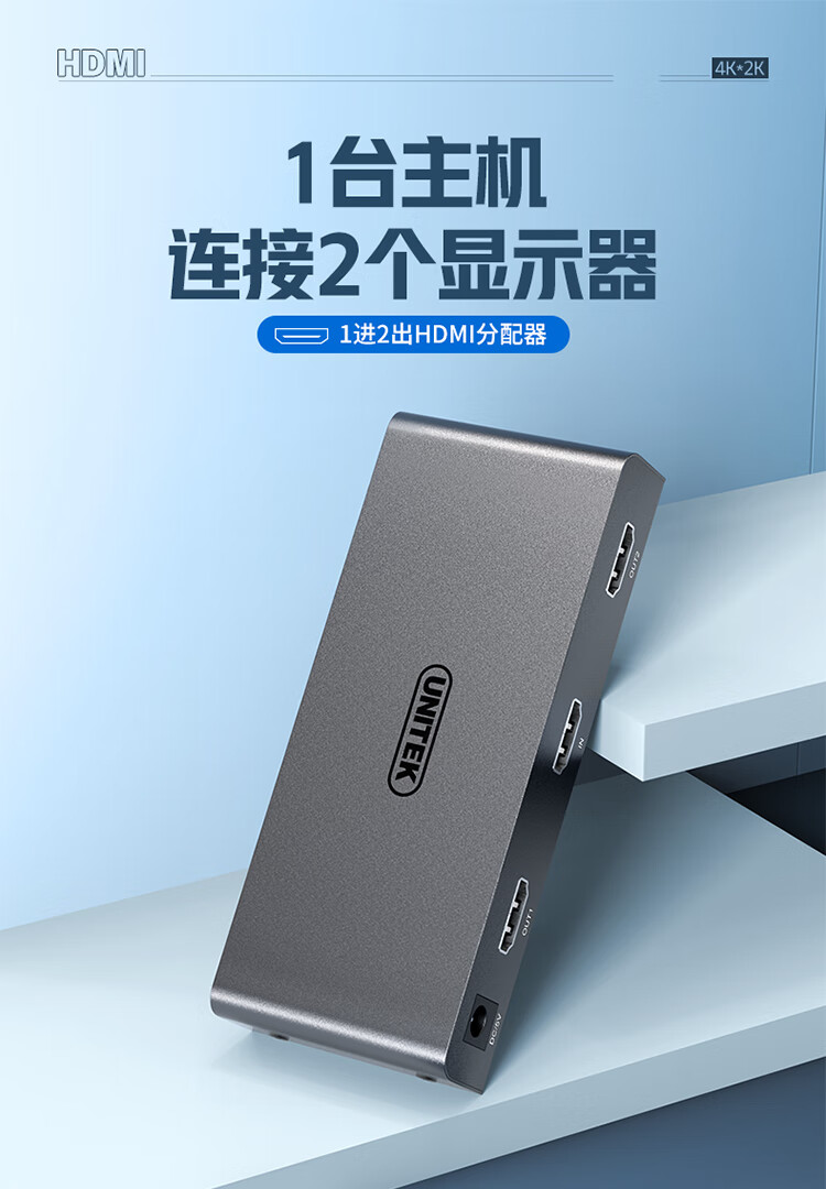 優(yōu)越者(UNITEK)HDMI分配器一分二 一進(jìn)二出4K數(shù)字高清視頻分屏器 筆記本電腦電視盒子接顯示器投影儀 V130A 自營(yíng)