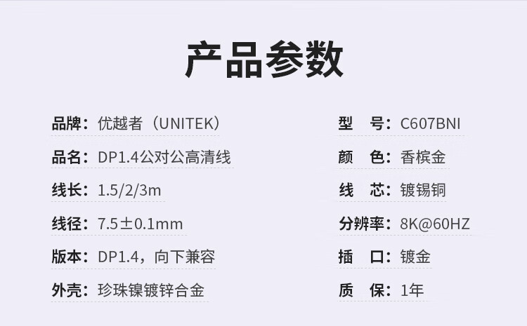優(yōu)越者 DP線1.4版4K144Hz 2K165Hz 8K高清DisplayPort公對(duì)公連接線電腦游戲電競(jìng)顯示器視頻線3米 C609BNI 自營(yíng)