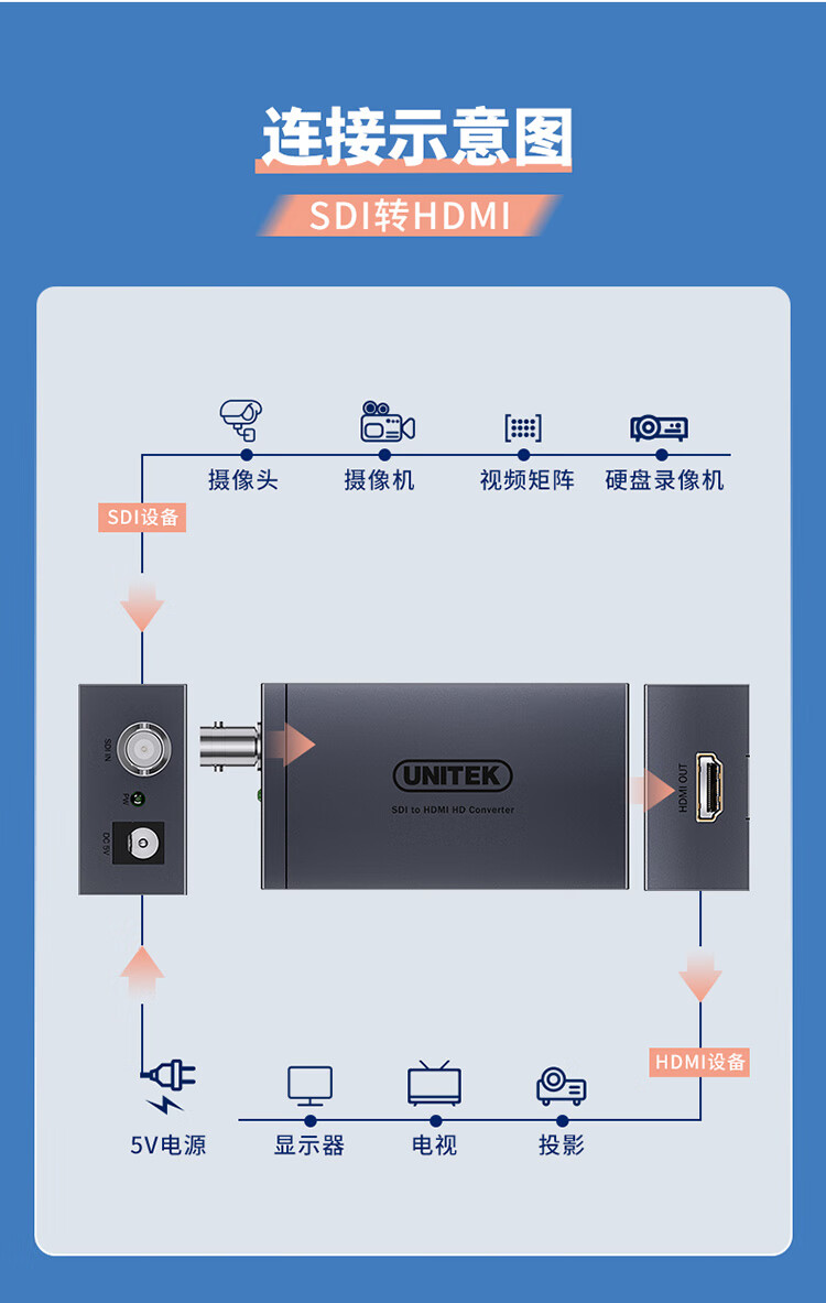 優(yōu)越者(UNITEK)HDMI轉(zhuǎn)SDI高清轉(zhuǎn)換器 HD/3G-sdi廣播級(jí)1080P/60Hz監(jiān)控?cái)z影機(jī)電視臺(tái)專用 V143A 自營