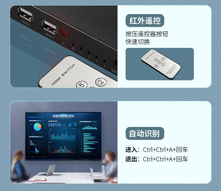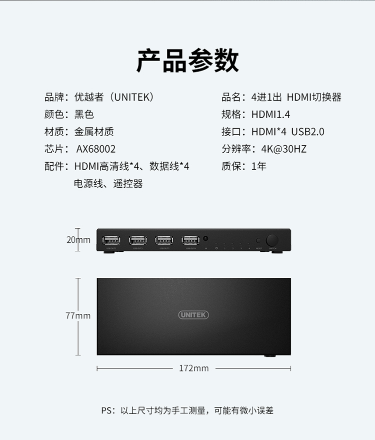 優(yōu)越者(UNITEK)HDMI切換器四進(jìn)一出 4K高清3D視頻切屏器KVM 筆記本機(jī)頂盒接電視投影儀共享顯示器 V302A 自營(yíng)
