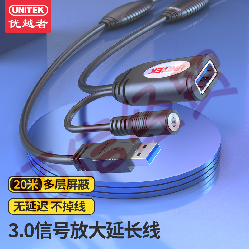 優(yōu)越者(UNITEK)USB延長線3.0帶DC供電電腦無線網(wǎng)卡打印機(jī)攝像頭公對母信號放大連接線usb延長器 20米 Y-3007 自營