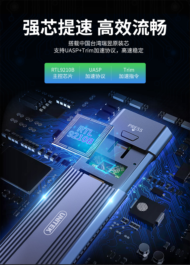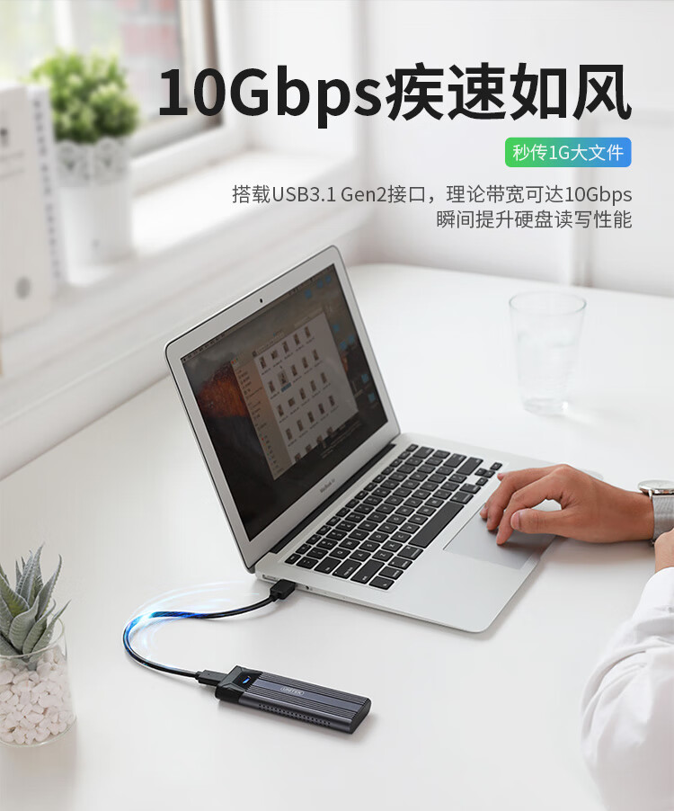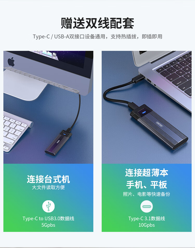 優(yōu)越者(UNITEK) M.2硬盤盒 NVMe/SATA雙協(xié)議 Type-C 10Gbps PCIe/NGFF筆記本SSD固態(tài)移動M2硬盤盒子 S204B 自營