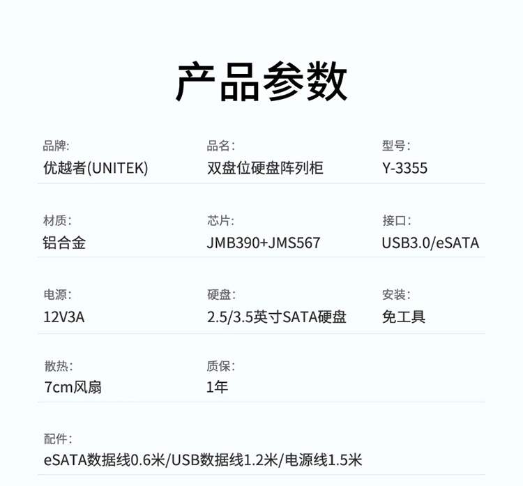 優(yōu)越者(UNITEK)磁盤陣列柜多盤位2.5/3.5英寸機械/SSD固態(tài)移動硬盤柜 雙盤位RAID筆記本外接硬盤盒子 Y-3355 自營