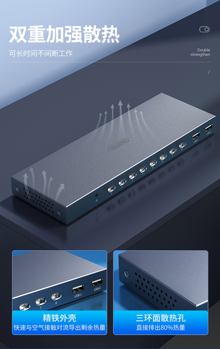 優(yōu)越者(UNITEK)HDMI切換器八進(jìn)一出KVM切換器 4K高清3D切屏器8進(jìn)1出 電腦機(jī)頂盒接電視投影儀共享顯示器V303A 自營