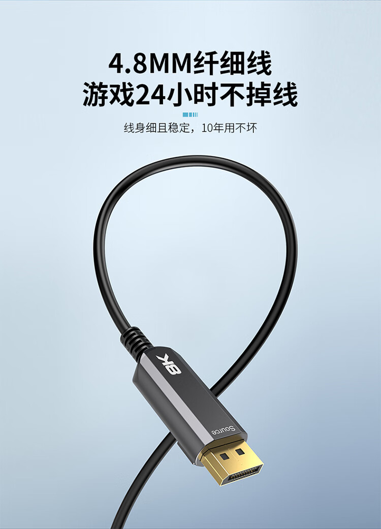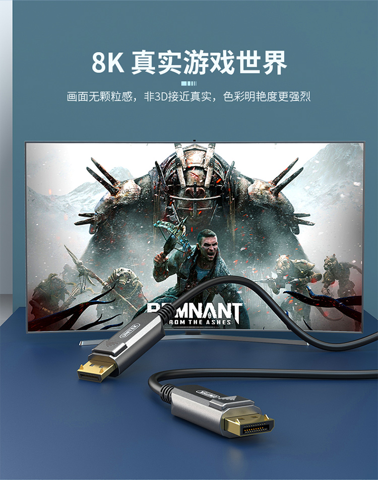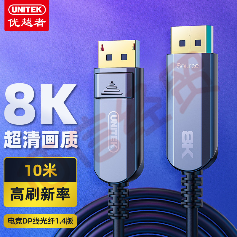 優(yōu)越者(UNITEK)光纖DP線1.4版 4K144Hz 8K高清DisplayPort公對公連接線電腦游戲電競顯示器視頻線10米 C616BK 自營