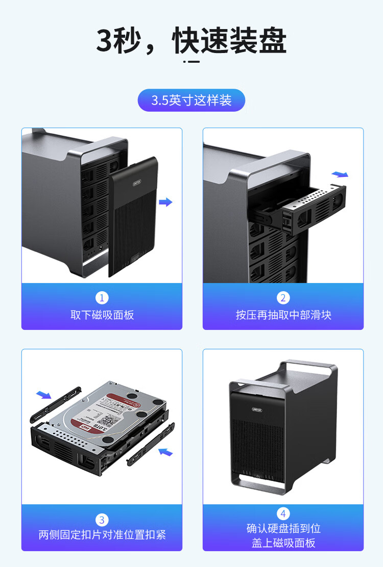 優(yōu)越者(UNITEK) S303A磁盤(pán)陣列柜五盤(pán)位帶RAID硬盤(pán)柜 2.5/3.5英寸機(jī)械/SSD固態(tài)筆記本外接多盤(pán)位硬盤(pán)盒 自營(yíng)