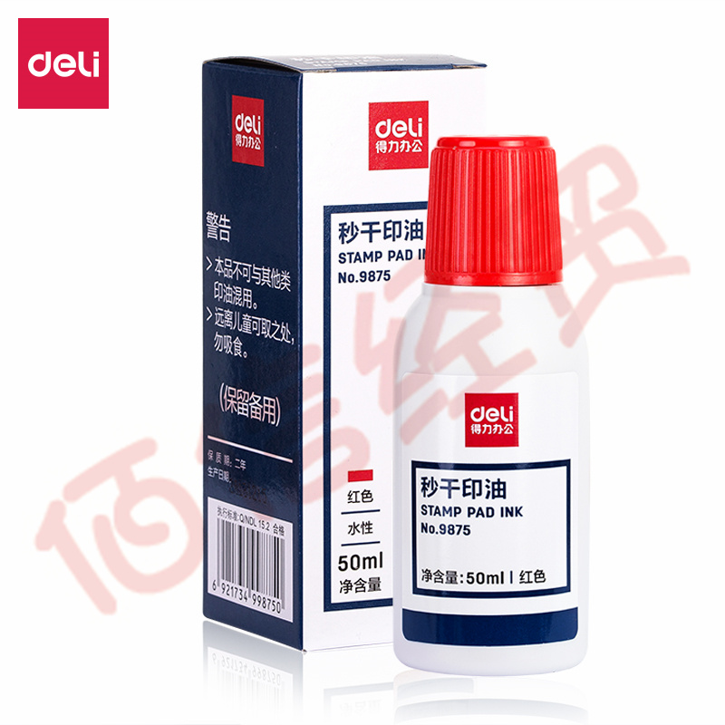得力(deli)9875-50ml秒干印油 財務辦公印章專用 辦公用品 紅色 自營