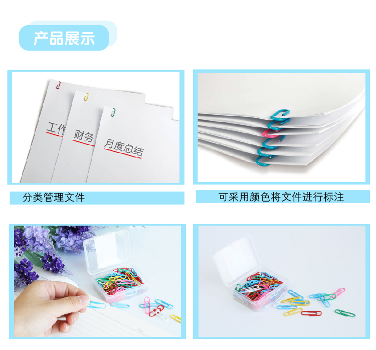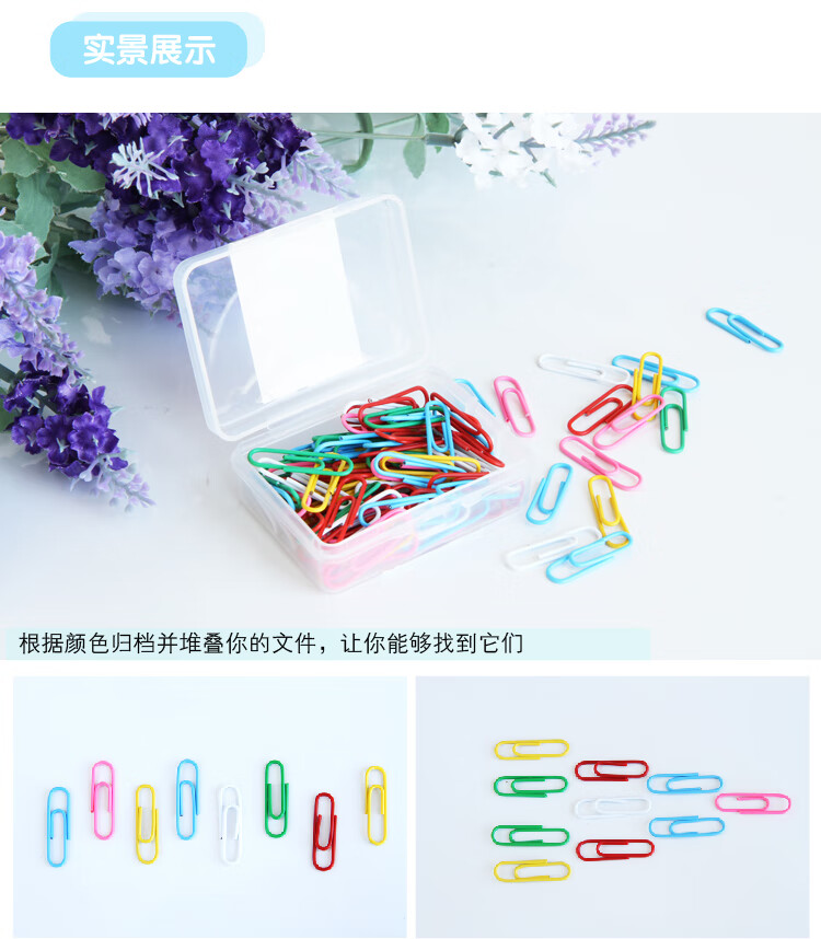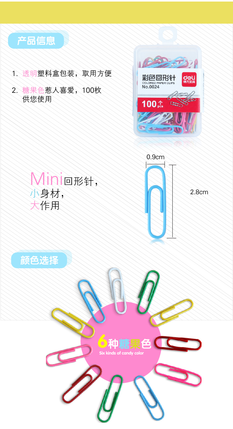 得力(deli)0024 彩色回形針 多色混合 辦公用品 100枚/盒 10盒裝 自營